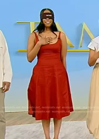 on Tamron Hall Show on ABC was spotted wearing this red flare dress on Tamron Hall Show on Apr 30 2024's episode.