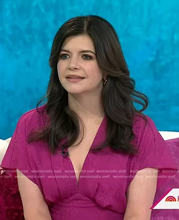 on Today on NBC was spotted wearing this pink v-neck midi dress on Today on Apr 30 2024's episode. 's Dress is the Seymour Silk Dress in Wildberry by Veronica Beard.