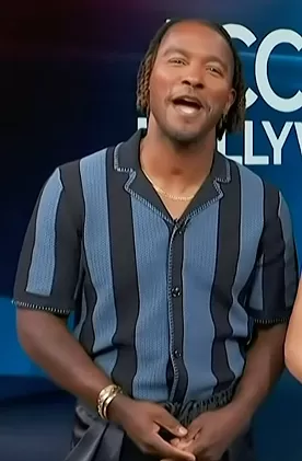 Scott Evans on Access Hollywood on NBC was spotted wearing this blue striped shirt on Access Hollywood on Apr 30 2024's episode. Scott's Shirt is the Naxos Short Sleeve Textured Shirt by Reiss.