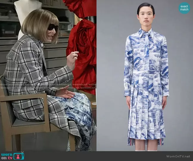 on Today on NBC was spotted wearing this grey plaid coat and print pleated skirt on Today on May 06 2024's episode. 's Top is the Nautical Silk Twill Toile Easy Fit Shirt by Thom Browne . 's Skirt is the Nautical Printed Pleated Skirt by Thom Browne . 's Coat is the Check Print Single Breasted Coat by Prada.