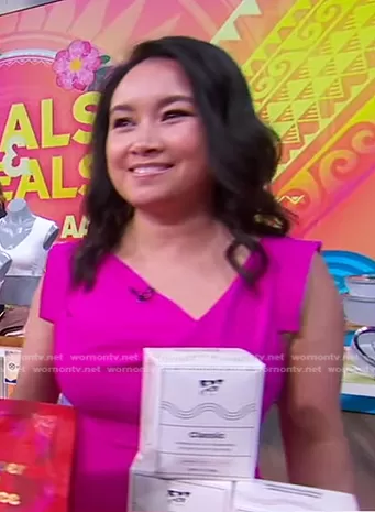 Black Halo Jackie O Sheath Dress in Vibrant Pink worn by Debbie Wei Mullin on Good Morning America