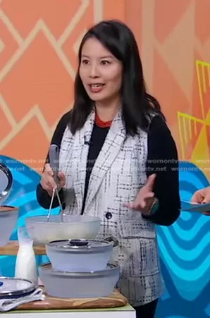 on Good Morning America on ABC was spotted wearing this white tweed vest on Good Morning America on May 01 2024's episode. 's Vest is the Tweed Vest by Maeve.