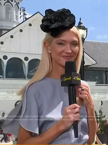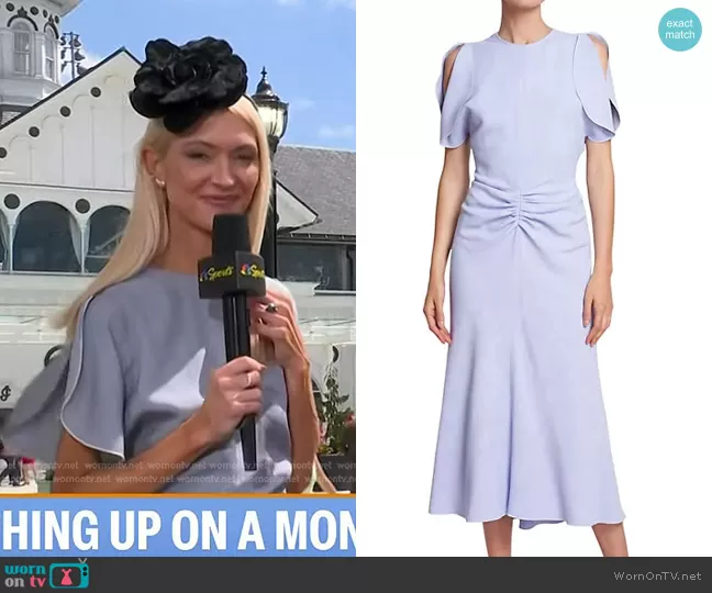 on Today on NBC was spotted wearing this blue slit sleeve dress on Today on May 06 2024's episode. 's Dress is the Gathered Waist Midi-Dress in Frost by Victoria Beckham.