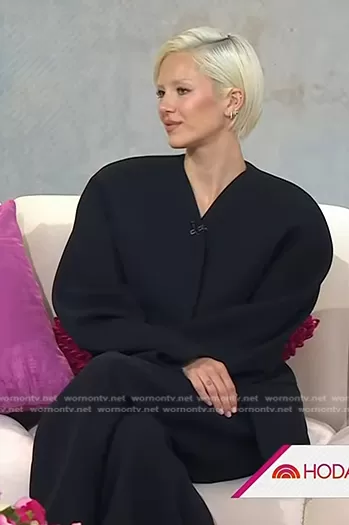 on Today on NBC was spotted wearing this black jacket and wide-leg pants on Today on May 06 2024's episode. 's Jacket is the Ovalo Cady Blazer by Jacquemus . 's Pants is the Le Pantalon Ovalo Pleated Cady Tapered Pants by Jacquemus.