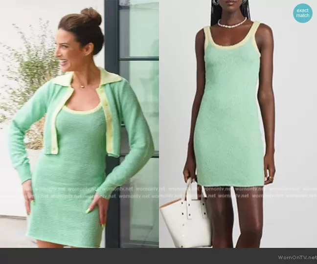 Polly Brindle (played by Polly Brindle) on Selling the OC on Netflix was spotted wearing this mint textured dress and cardigan on Selling the OC on episode 'Big Dock Energy' (3x01) in May 2024. Polly's Dress is the Textured cotton stretch dress green by Who What Wear . Polly's Sweater is the Lucy textured cotton cardigan green by Who What Wear.