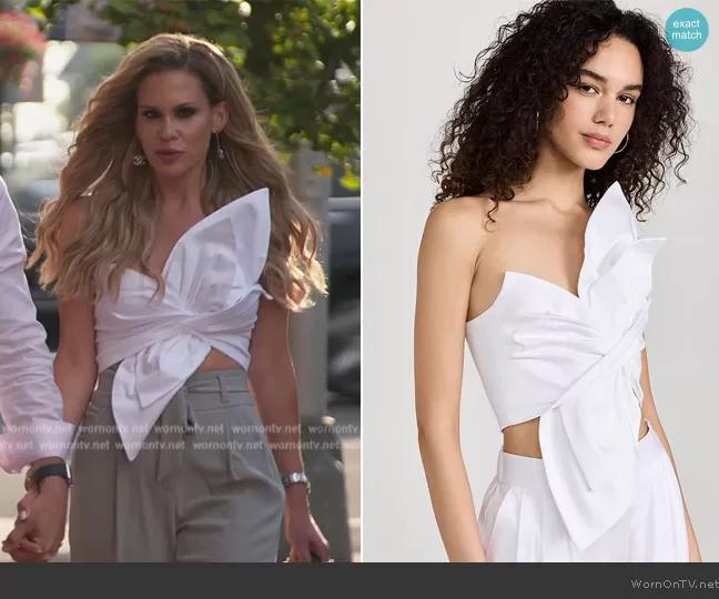 Jackie Goldschneider on The Real Housewives of New Jersey on Bravo was spotted wearing this white bow front top on The Real Housewives of New Jersey on episode 'Birthday Bombshell' (14x01) in May 2024. Jackie's Top is the Orchid Top by JBQ.