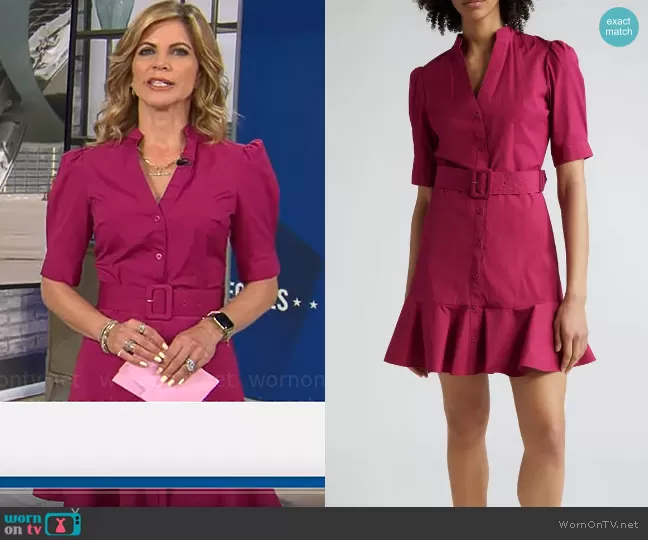 Veronica Beard Molly Shirtdress in Wildberry worn by Natalie Morales on CBS Mornings