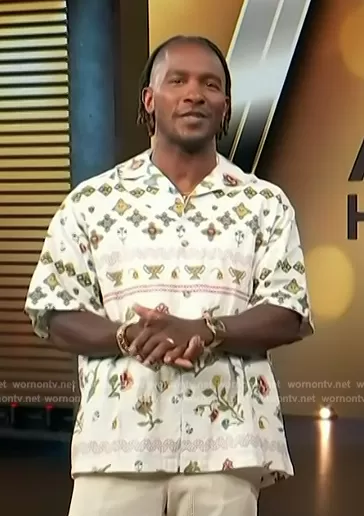 Scott Evans on Access Hollywood on NBC was spotted wearing this printed shirt on Access Hollywood on May 09 2024's episode. Scott's Shirt is the Oversized revere shirt with floral print by ASOS.
