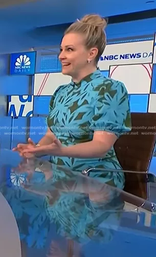on NBC News Daily on NBC was spotted wearing this blue and green floral dress on NBC News Daily on May 09 2024's episode. 's Dress is the Nella Dress by Brushed Petals Pool Party by Diane von Furstenberg.