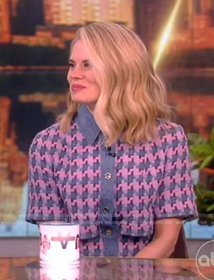Sandro Amadora Denim Trim Houndstooth Tweed Mini Dress worn by Celia Keenan-Bolger on The View