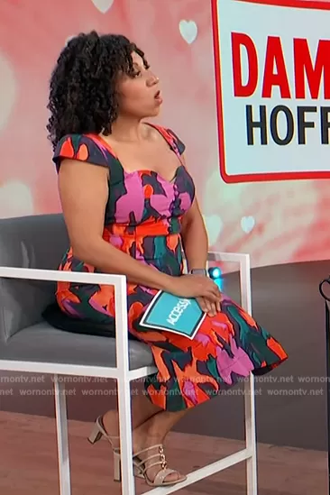 on Access Hollywood on NBC was spotted wearing this floral print sweetheart dress on Access Hollywood on May 13 2024's episode. 's Dress is the The Cecily Fit & Flare Sweetheart Dress by Maeve.