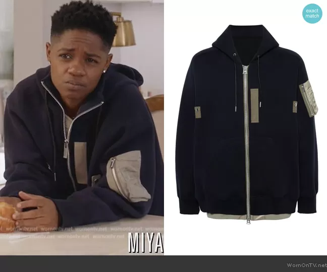 Tamia Cooper (played by Bre Z) on All American on CWTV was spotted wearing this jacket with contrast pocket on All American on episode 'Passin' Me By' (6x07) in May 2024. Coop's Jacket is the Layered zipped hoodie by Sacai.