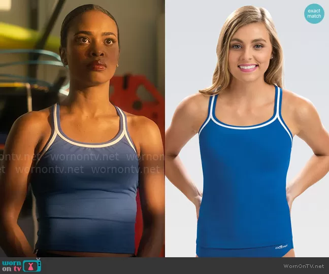 Faran Bryant (played by Zaria) on Pretty Little Liars Original Sin on HBO was spotted wearing this blue tank top with white trim on Pretty Little Liars Original Sin on episode 'Chapter Fifteen: Friday the 13th' (2x05) in May 2024. Faran's Top is the Royal Tankini Top by Dolfin.
