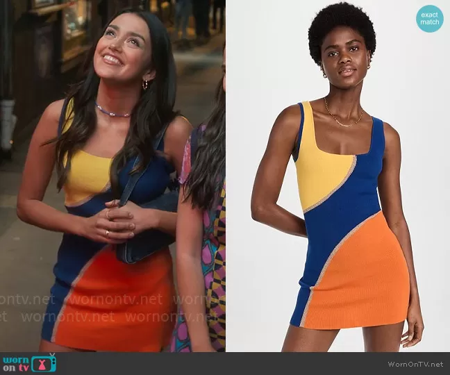 Noa Olivar (played by Maia Reficco) on Pretty Little Liars Original Sin on HBO was spotted wearing this colorblock mini dress on Pretty Little Liars Original Sin on episode 'Chapter Twelve: Summer Lovin' (2x02) in May 2024. Noa's Dress is the The Kimberly Mini Dress by Solid and Striped.