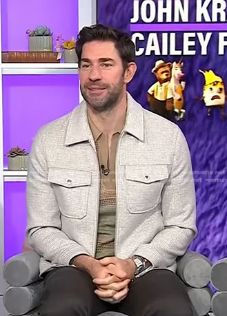 Reiss Maray Check Wool Blend Zip-Up Jacket in Oatmeal worn by John Krasinski on Today
