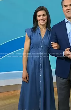 on Today on NBC was spotted wearing this cap sleeve denim shirtdress on Today on May 16 2024's episode. 's Dress is the Ruben Denim Midi Shirtdress in Cornflower by Veronica Beard.