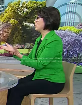 on Today on NBC was spotted wearing this green cropped tweed blazer on Today on May 16 2024's episode. 's Jacket is the Tweed Boxy Blazer in Island Green by Joseph Ribkoff.