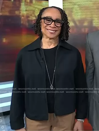 on Today on NBC was spotted wearing this black zip front jacket on Today on May 16 2024's episode. 's Jacket is the Cotton Blend Jacket in Black by Vince.