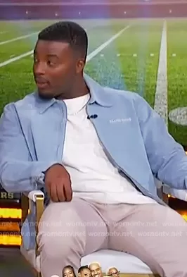 on The Jennifer Hudson Show on FOX was spotted wearing this blue jacket on The Jennifer Hudson Show on May 17 2024's episode. 's Jacket is the Leather Jacket Suede Adriatic Blue by Filling Pieces.