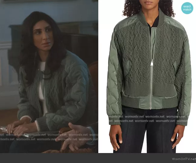 (played by Olivia Khoshatefeh) on Elsbeth on CBS was spotted wearing this cable knit bomber jacket on Elsbeth on episode 'A Classic New York Character' (1x02) in Apr 2024. 's Jacket is the Rollins Mixed Media Jacket by Simkhai.
