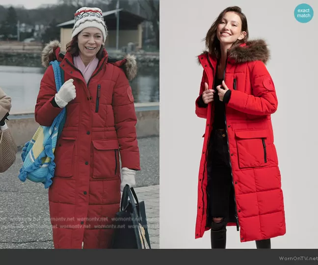 Elsbeth Tascioni (played by Carrie Preston) on Elsbeth on CBS was spotted wearing this red coat on Elsbeth on episode 'Love Knocked Off' (1x04) in Apr 2024. Elsbeth's Coat is the Longline Faux Fur Everest Coat by Superdry . Elsbeth's Bag is the Striped crochet tote bag by Ganni.
