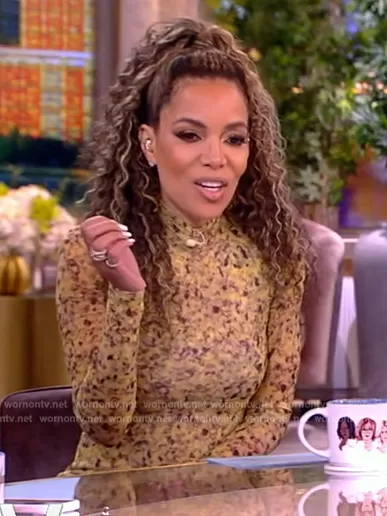 Sunny Hostin on The View on ABC was spotted wearing this yellow printed mesh dress on The View on May 20 2024's episode. Sunny's Dress is the Long-Sleeve Mesh Maxi Dress by Rosetta Getty.