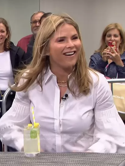 on Access Hollywood on NBC was spotted wearing this white poplin blouse on Access Hollywood on May 20 2024's episode. 's Top is the Button-front Stretch-poplin Shirt With Detailed Sleeves in White by Lela Rose.