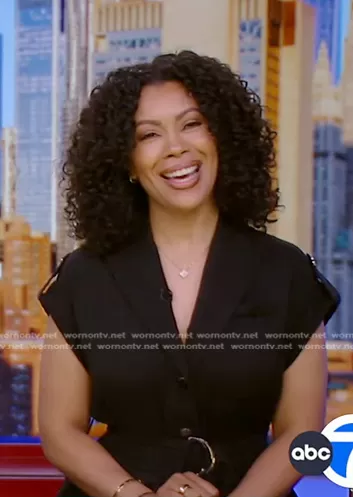 Shirleen Allicot on Good Morning America on ABC was spotted wearing this black belted shirtdress on Good Morning America on May 20 2024's episode. Shirleen's Dress is the Celia Belted Midi Dress by Ramy Brook.