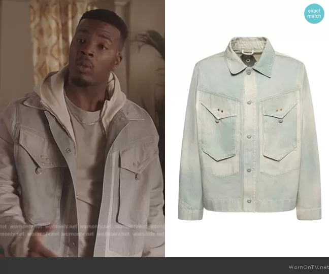 Spencer James (played by Daniel Ezra) on All American on CWTV was spotted wearing this denim jacket with large pockets on All American on episode 'Kids See Ghosts' (6x08) in May 2024. Spencer's Jacket is the Logo print cotton denim jacket by Objects lv Life.