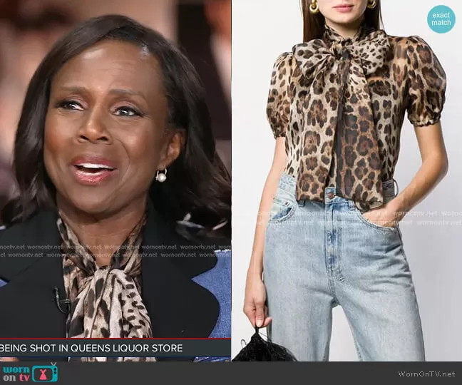 Top: Leopard Print Pussy Bow Blouse by Dolce & Gabbana