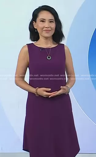 Vicky Nguyen on Today on NBC was spotted wearing this purple sleeveless dress and green pom pom sandals on Today on May 23 2024's episode. Vicky's Dress is the Joyous Asymmetrical Dress by Trina Turk . Vicky's Shoes is the Luella Ankle Strap Sandals in Pistachio Se by Sam Edelman.