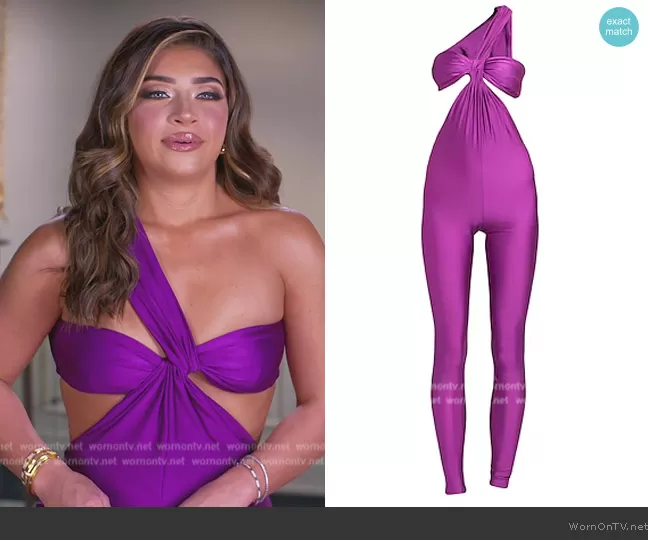 Gia Giudice on The Real Housewives of New Jersey on Bravo was spotted wearing this purple confessional jumpsuit on The Real Housewives of New Jersey on episode 'A League of Their Own Worst Enemy' (14x04) in May 2024. 's Jumpsuit is the Confessional Jumpsuit by Saint Laurent.