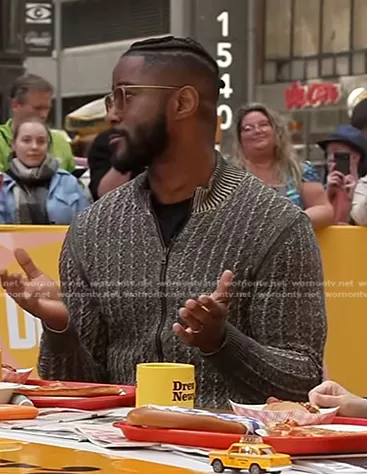on The Drew Barrymore Show on CBS was spotted wearing this knit zip jacket on The Drew Barrymore Show on May 27 2024's episode. 's Sweater is the Foil Cable Full Zip Cardigan Sweater by John Varvatos.
