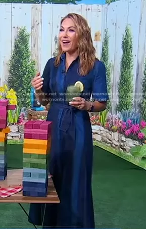 Lori Bergamotto on Good Morning America on ABC was spotted wearing this colorblock denim shirtdress on Good Morning America on May 28 2024's episode. Lori's Dress is the Denim Patchwork Midi Dress by Prabal Gurung Collective.