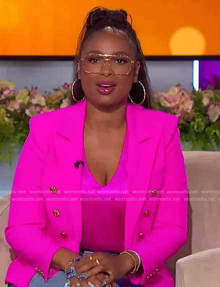 Jennifer Hudson on The Jennifer Hudson Show on FOX was spotted wearing this pink double breasted blazer on The Jennifer Hudson Show on May 31 2024's episode. Jennifer's Blazer is the Janna Crepe Blazer by Generation Love.