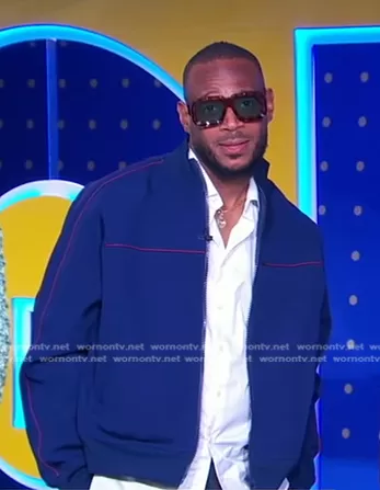 on Good Morning America on ABC was spotted wearing this navy track jacket on Good Morning America on Jun 03 2024's episode. 's Jacket is the Zip-up Sports Jacket by Sacai.