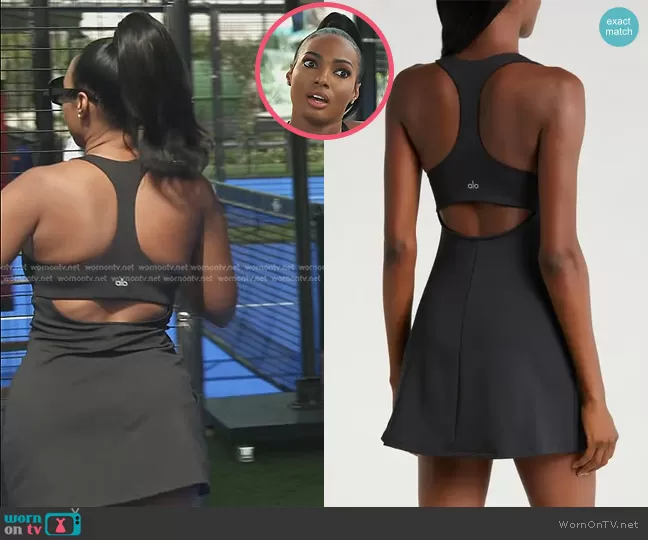 Lesa Milan (played by Lesa Milan) on The Real Housewives of Dubai on BravoTV was spotted wearing this black cutout back tennis dress on The Real Housewives of Dubai on episode 'The V.V.I.P.' (2x01) in Jun 2024. Lesa's Dress is the Airlift Fly Tennis Dress by Alo . Lesa's Sunglasses is the DiorXtrem MU Mask Sunglasses by Dior . Lesa's Socks is the Unisex Throwback sock by Alo.