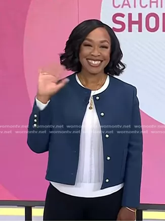 on Today on NBC was spotted wearing this navy jacket with pearl buttons on Today on Jun 04 2024's episode. 's Jacket is the Cropped Jacket in Blue Wool and Silk by Dior.