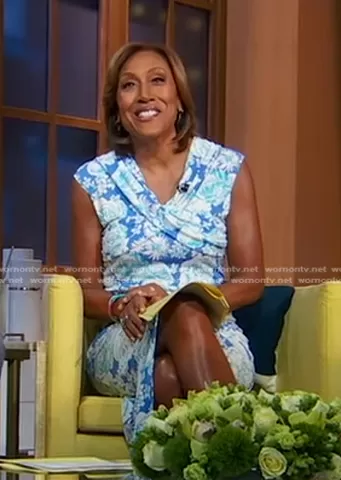 Robin Roberts on Good Morning America on ABC was spotted wearing this blue floral v-neck dress on Good Morning America on Jun 04 2024's episode. Robin's Dress is the Stephen Floral Midi Dress in June Bloom Blue by Diane von Furstenberg.