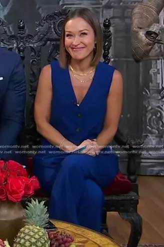 Eva Pilgrim on Good Morning America on ABC was spotted wearing this blue vest and pants on Good Morning America on Aug 16 2024's episode. Eva's Vest is the Polished Stretch Wool Blend Vest by Karen Millen . Eva's Pants is the Polished Stretch Wool Blend Pleated Wide Leg Pants by Karen Millen.