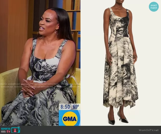 on Good Morning America on ABC was spotted wearing this octopus print dress on Good Morning America on Jun 05 2024's episode. 's Dress is the Oceanscape Jacquard Maxi Dress by Jason Wu Collection.