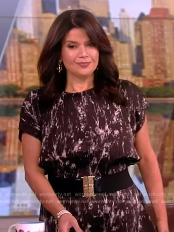 Ana Navarro on The View on ABC was spotted wearing this black tie dye dress on The View on Jun 07 2024's episode. Ana's Dress is the Plisse Belted Midi Dress by Lafayette 148.
