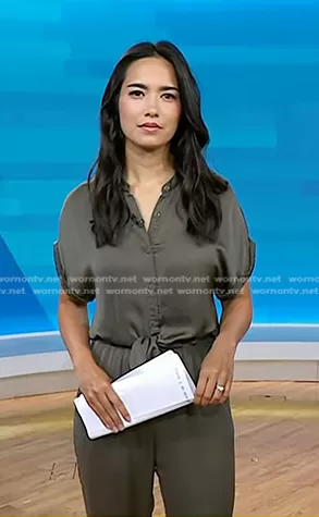 Emilie Ikeda on Today on NBC was spotted wearing this khaki green jumpsuit on Today on Jun 07 2024's episode.