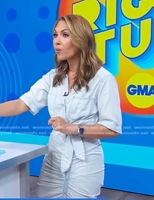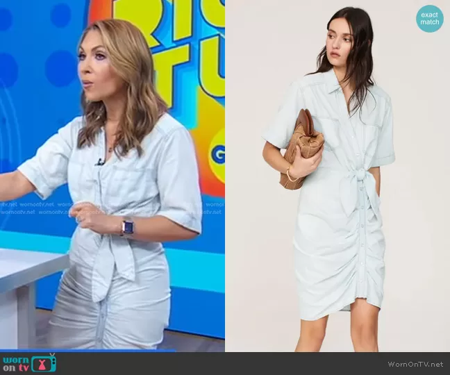 Lori Bergamotto on Good Morning America on ABC was spotted wearing this chambray ruched dress on Good Morning America on Jun 07 2024's episode. Lori's Dress is the Hensley Dress by Veronica Beard.
