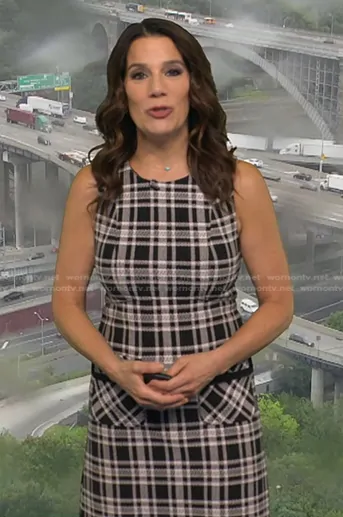 Heather O’Rourke on Good Morning America on ABC was spotted wearing this black plaid sleeveless dress on Good Morning America on Aug 01 2025's episode. Heather's Dress is the Textured Knit Plaid A-Line Dress by Tommy Hilfiger.