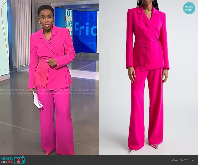 Zinhle Essamuah on NBC News Daily on NBC was spotted wearing this pink patch pocket blazer and pants on NBC News Daily on Jul 31 2025's episode. Zinhle's Jacket is the Amena Blazer in Fuchsia by Stine Goya . Zinhle's Pants is the Timo Stretch Wide Leg Pants in Fuchsia by Stine Goya.