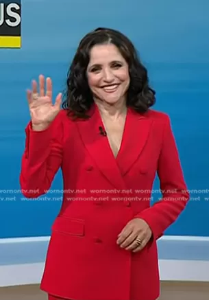 on Today on NBC was spotted wearing this red blazer and pant suit on Today on Jun 10 2024's episode. 's Jacket is the Crepe Double Breasted Tailored Suit Jacket by Carolina Herrera . 's Pants is the Crepe Pants by Carolina Herrera.