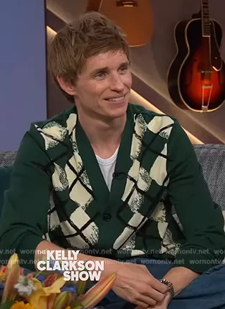 Burberry Argyle Cotton Cardigan worn by Eddie Radmayne on The Kelly Clarkson Show