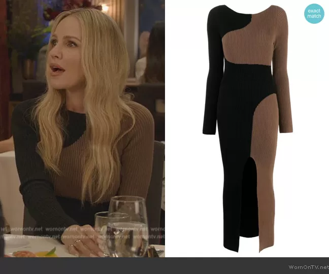 Laura Baker (played by Monet Mazur) on All American on CWTV was spotted wearing this colorblock ribbed dress on All American on episode 'The Next Episode' (6x11) in Jun 2024. Laura's Dress is the .