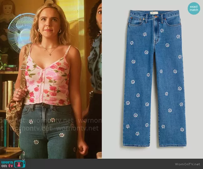 Imogen Adams (played by Bailee Madison) on Pretty Little Liars Original Sin on HBO was spotted wearing this rose print cami and flower print jeans on Pretty Little Liars Summer School on episode 'Chapter Seventeen: The Boogeyman' (2x07) in Jun 2024. Imogen's Pants is the The Perfect Vintage Wide-Leg Crop Jean in Stamped Floral by Madewell . Imogen's Shoes is the Champion Sneakers by Keds.